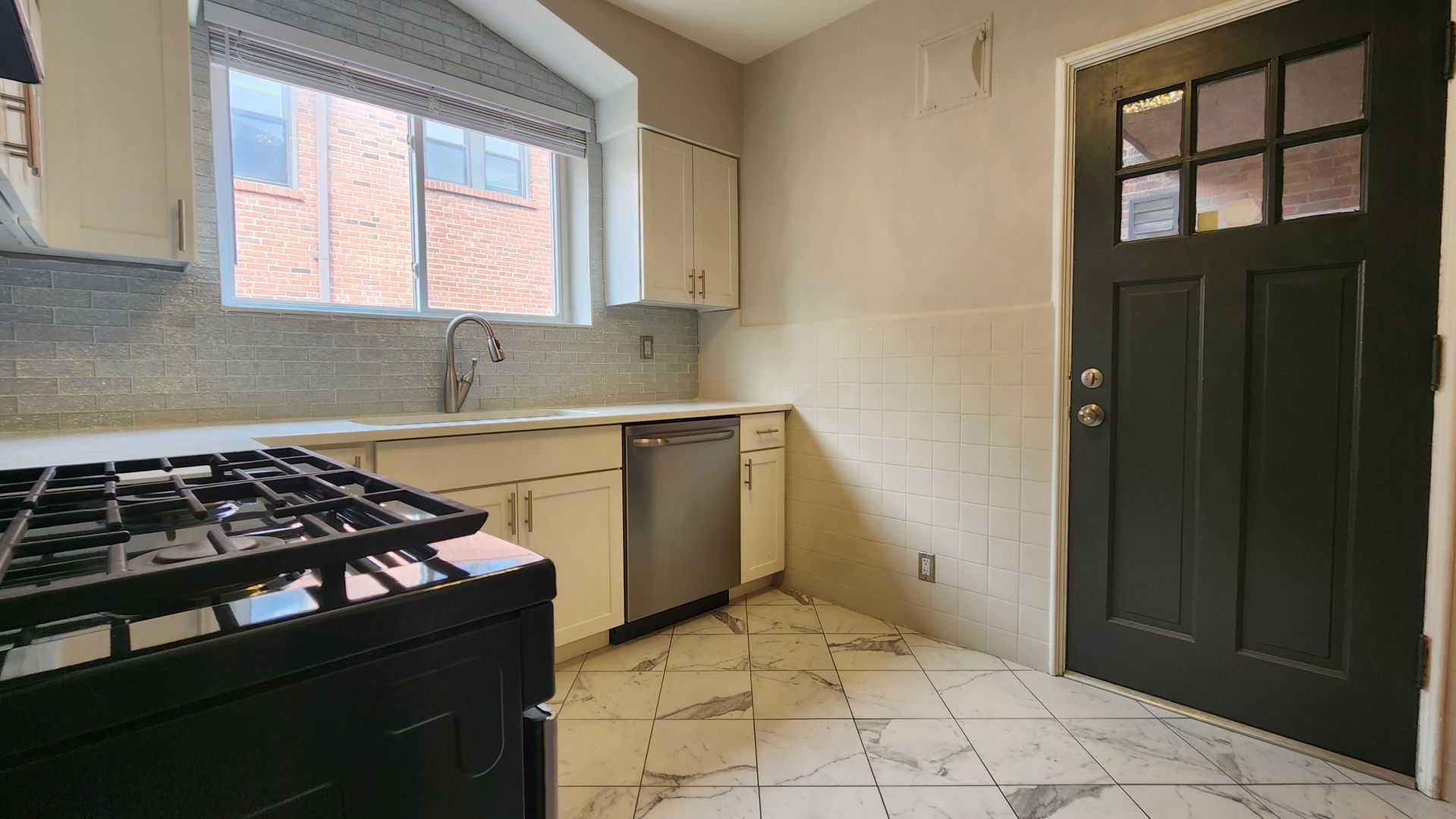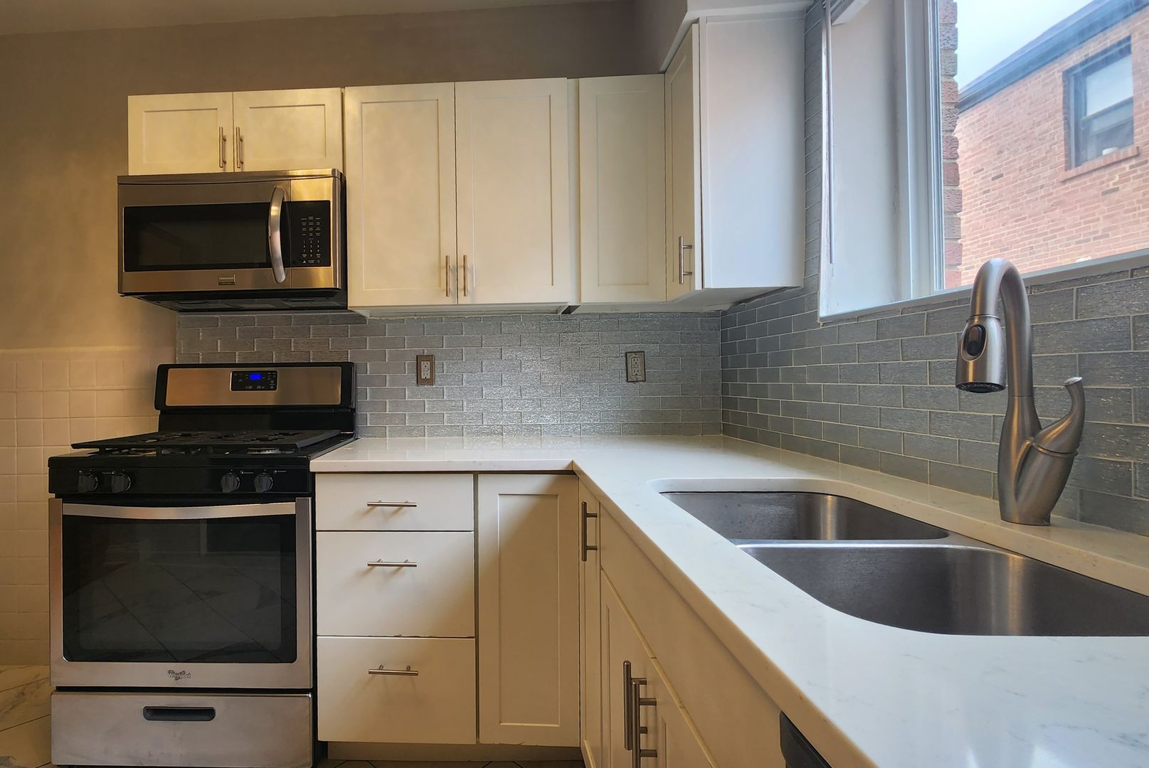 - Luxurious updated kitchen with quartz countertops and stainless steel appliances